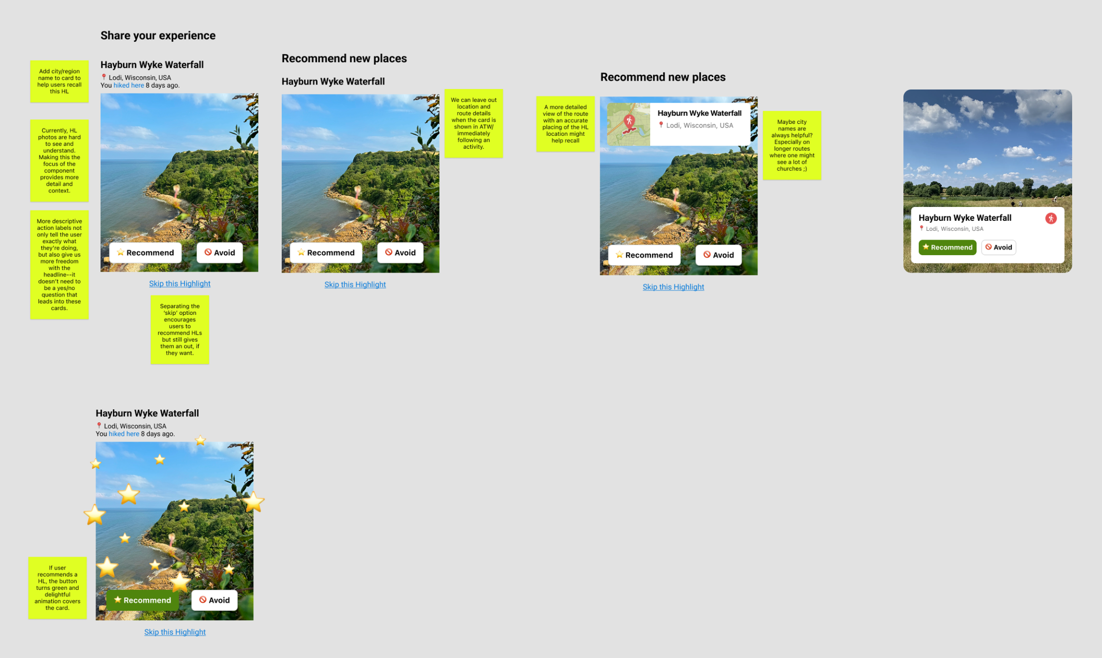 One of the biggest wins came from reworking the outdated Highlight recommendation format. Previously, users could only answer "Yes" or "No" to “Do you recommend this Highlight?”—a dull, uninspiring prompt that also limited how we presented information across the product.